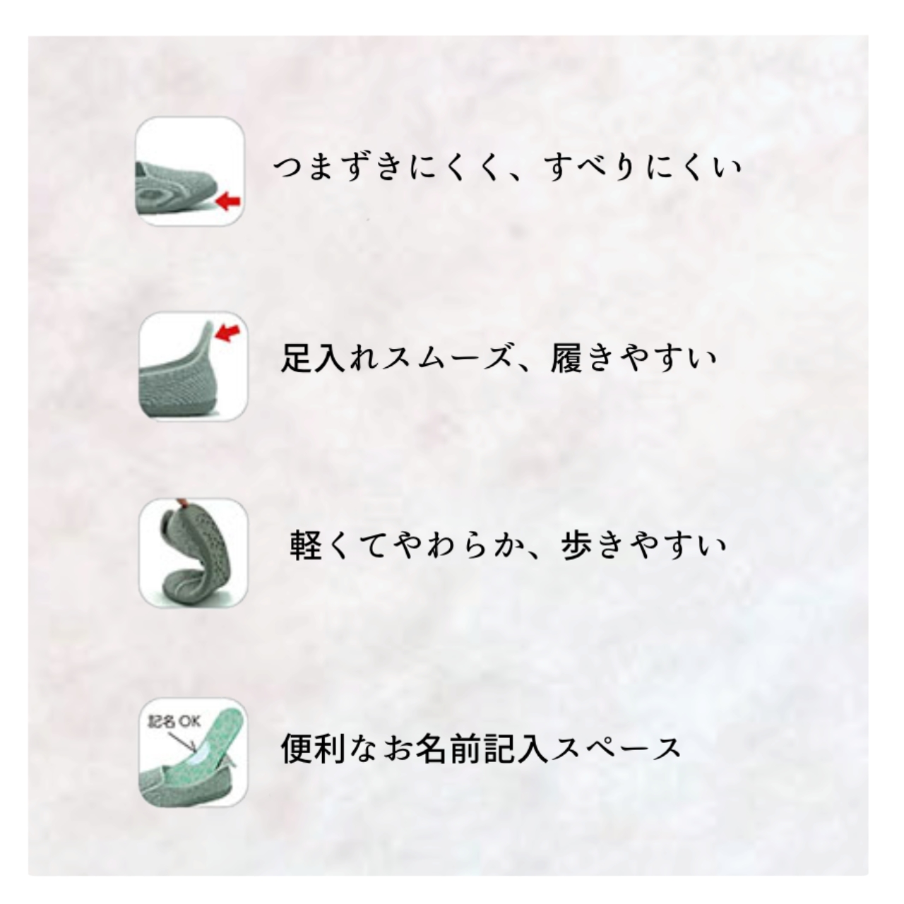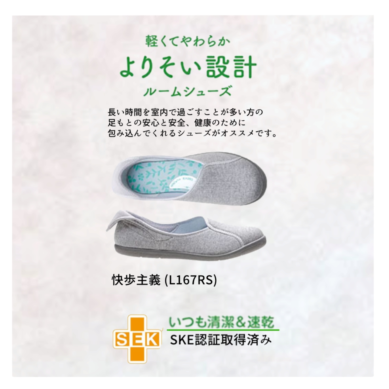 ・長い時間室内で過ごすことが多い方の足もとの安心・安全、快適と健康のために。